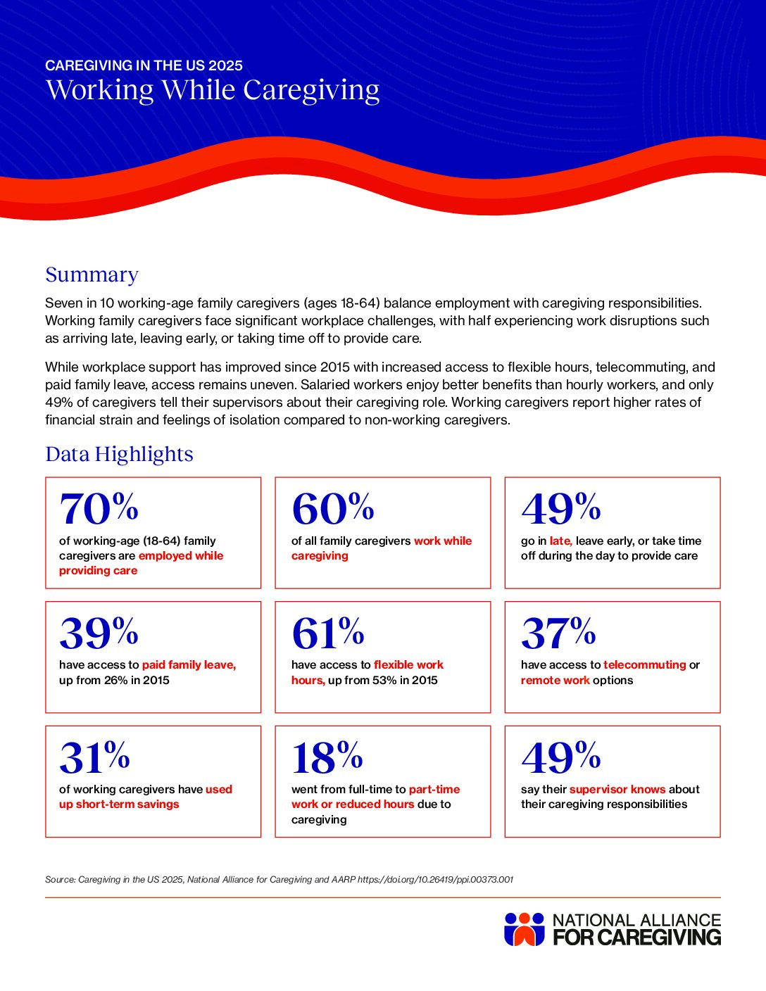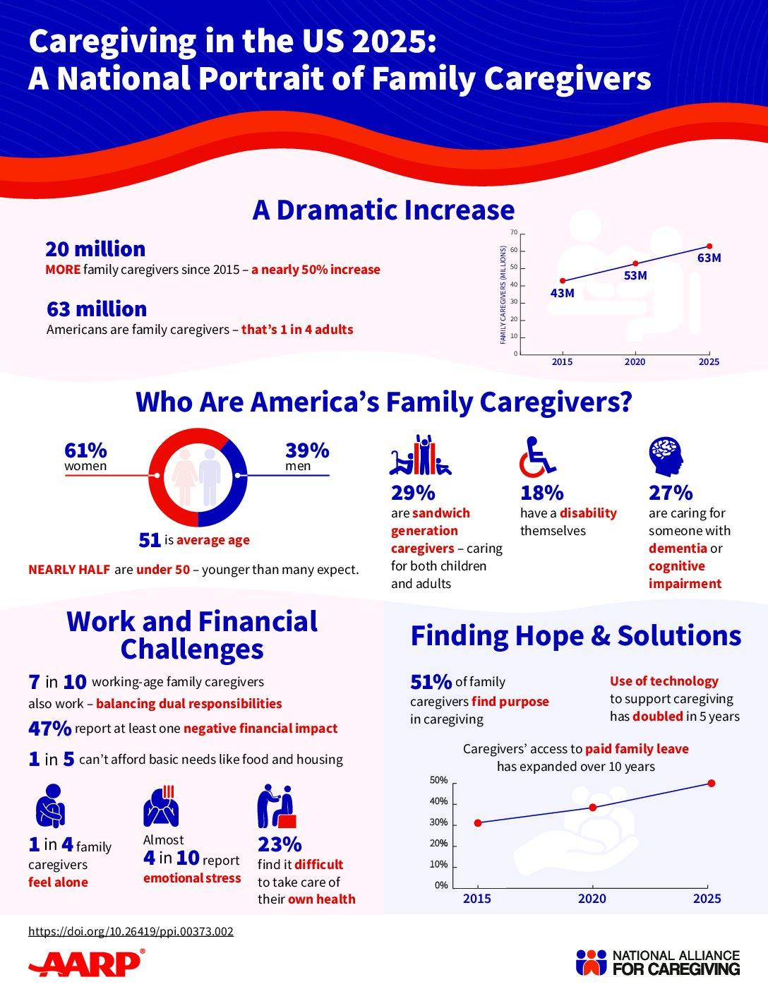 Caregiving in the US 2025 provides the most comprehensive national portrait of family caregiving today, drawing on the voices and experiences of millions of Americans. By grounding advocacy in evidence, this report equips policymakers with the insights they need to design policies that truly support caregivers and strengthen the systems of care on which we rely.
