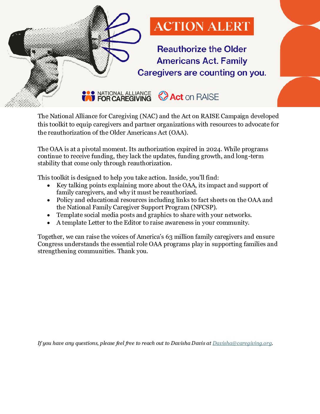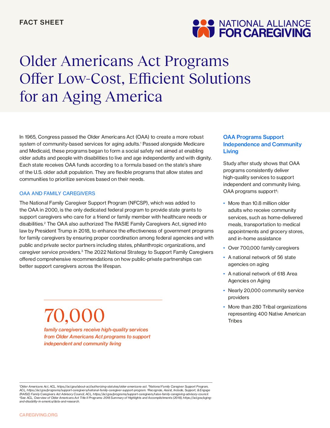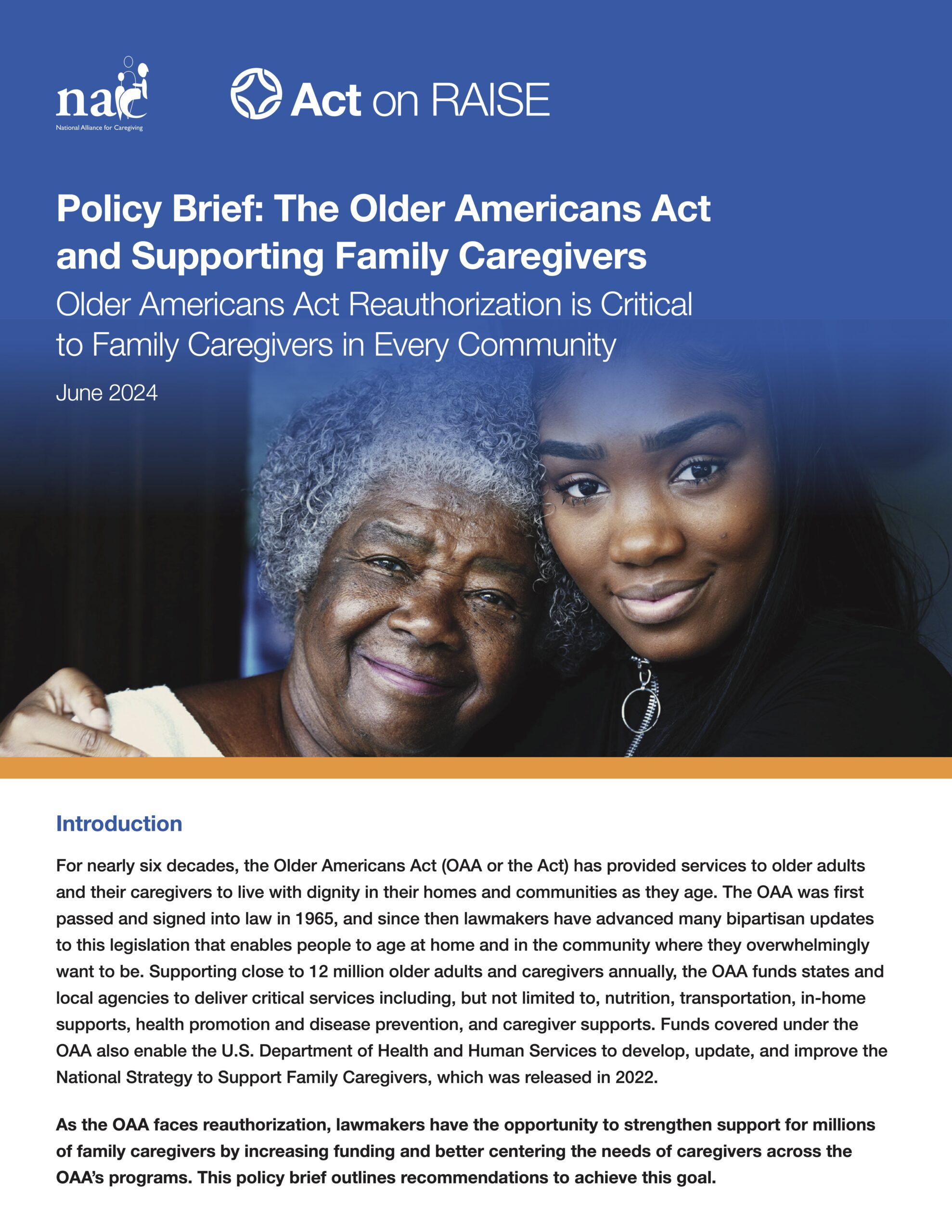 Policy Brief: The Older Americans Act and Supporting Family Caregivers Older Americans Act Reauthorization is Critical to Family Caregivers in Every Community